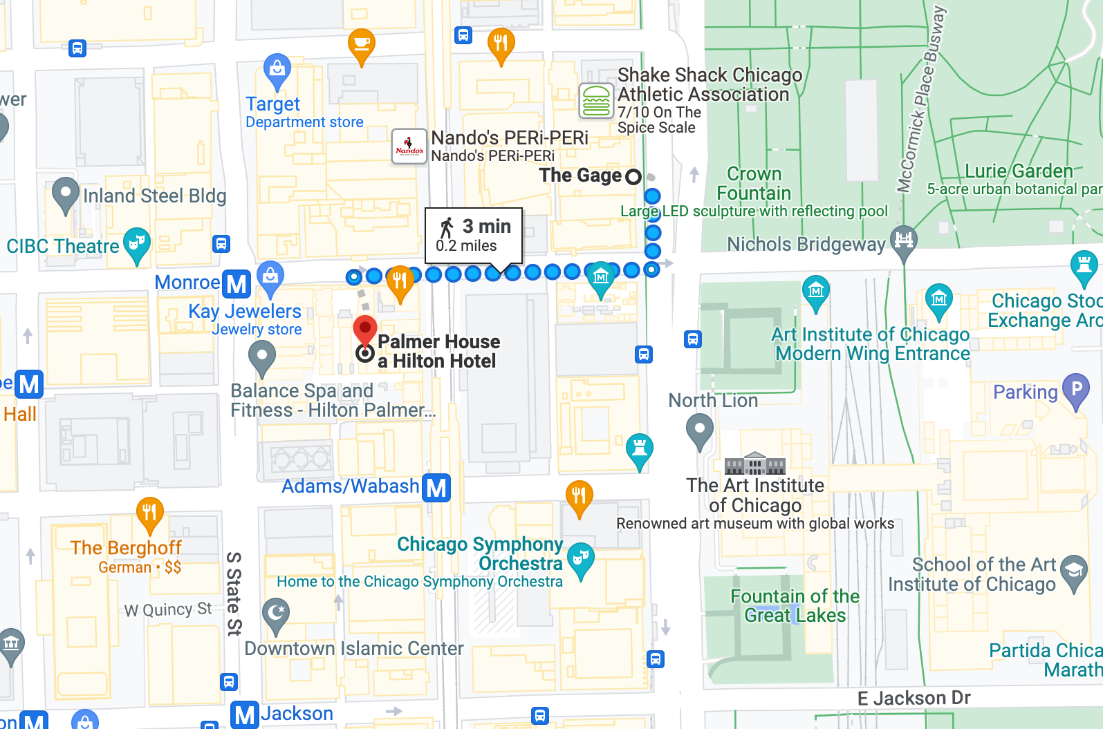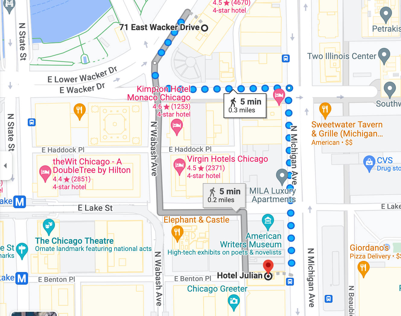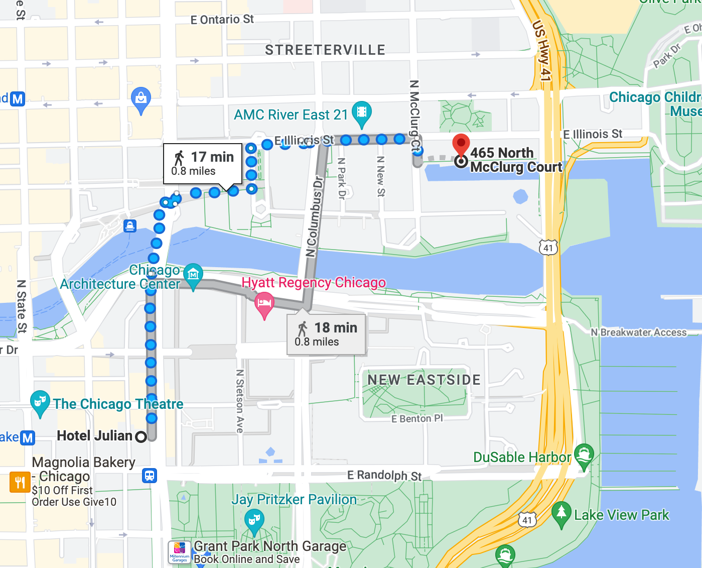 This hotel is modern, clean, and decently sized for a room in the city. The location Is amazing! It Is on Michigan Ave. (one of the main streets of Chicago) and walkable to most activities on this Itinerary. If you are lucky, you might even have a view of the Bean from your room! Be warned... It can get noisy at night from the traffic, but... It's part of the city experience.
