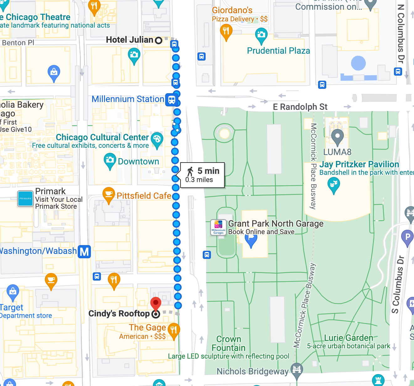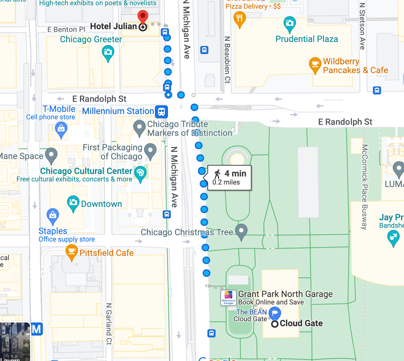 This park Is just a 4 minute walk from Hotel Julian. Here you will be greeted with The Bean. The Bean Is a reflective piece of art that captures the beautiful essence of Chicago. This spot Is touristy, but worthwhile for a quick photo. If you have time, explore Millenium Park, you won't regret It.